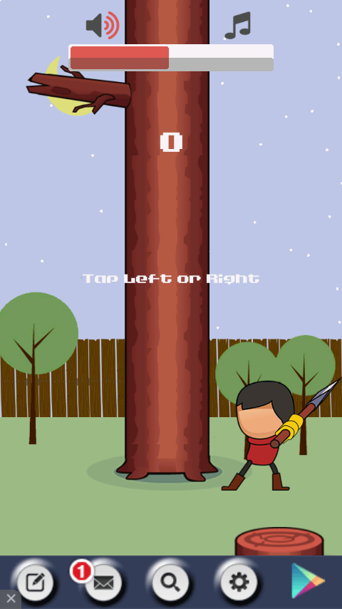Simple arcade game, cut the wood by tap left or right as much as possible, and got the highest score.